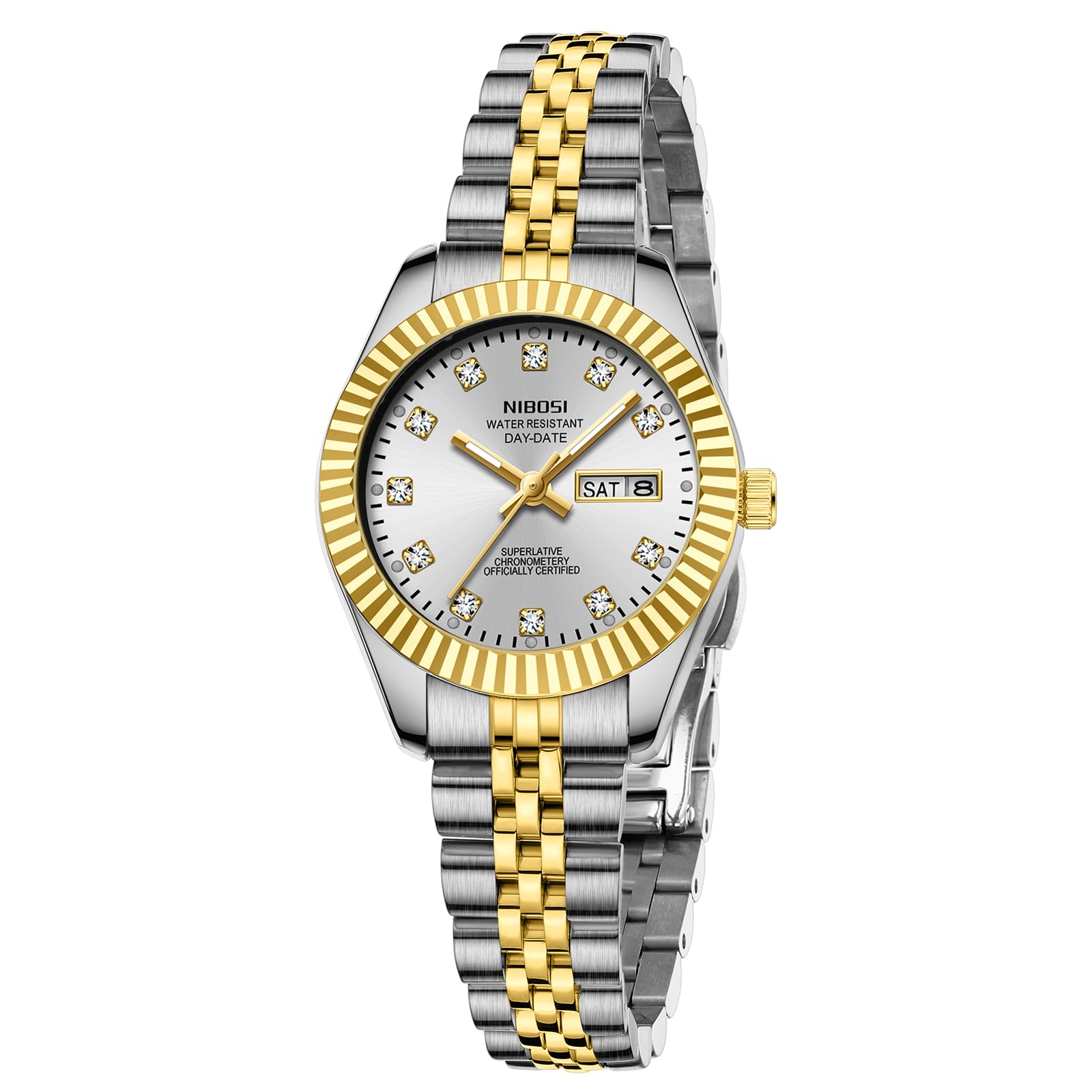 NIBOSI Watches for Women Analog Quartz Stainless Steel Dial Gold Silver Two Tone Bracelet with Day Date Luminous Waterproof Dainty Classic Luxury Diamond Elegant Dress Women's Watch for Small Wrists